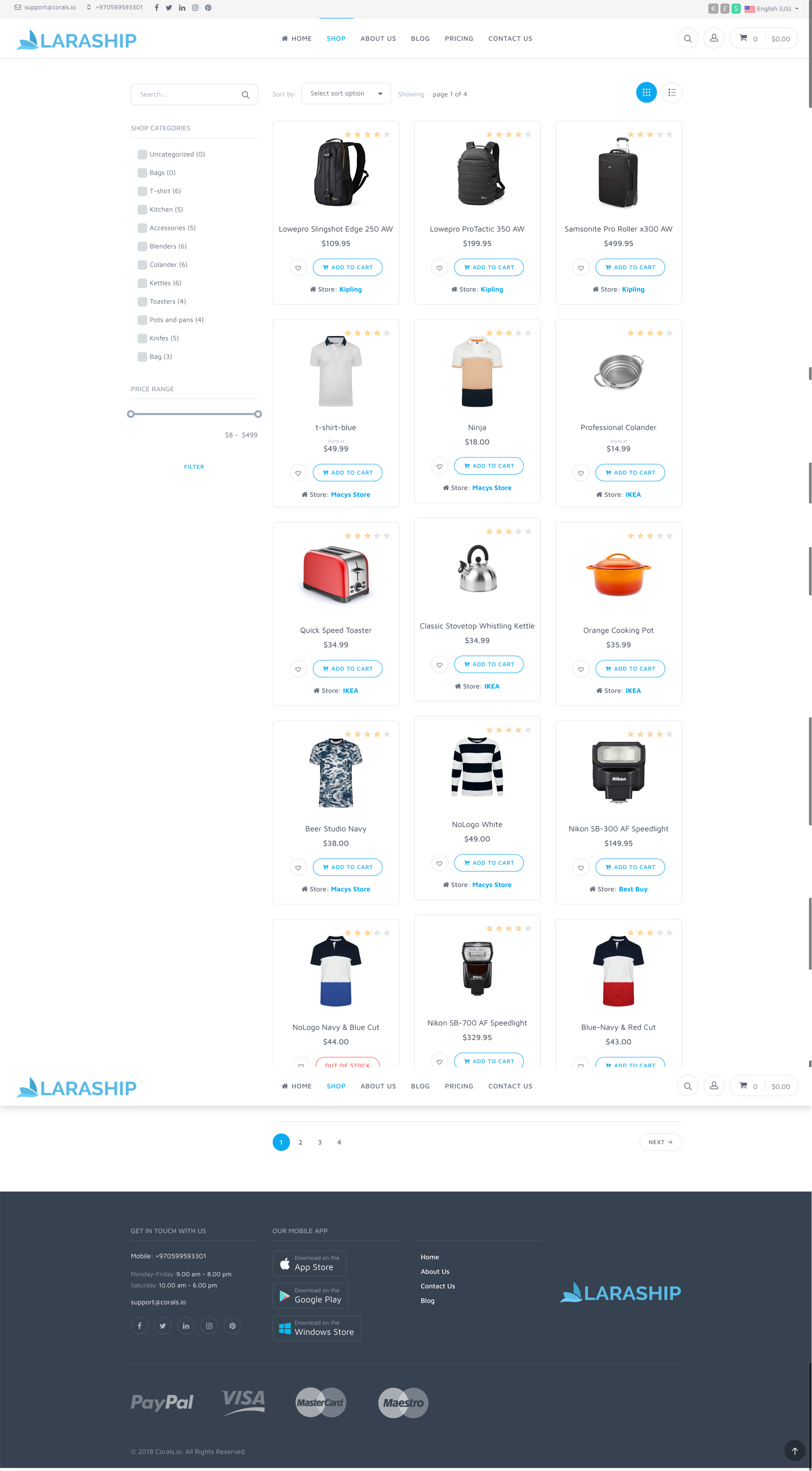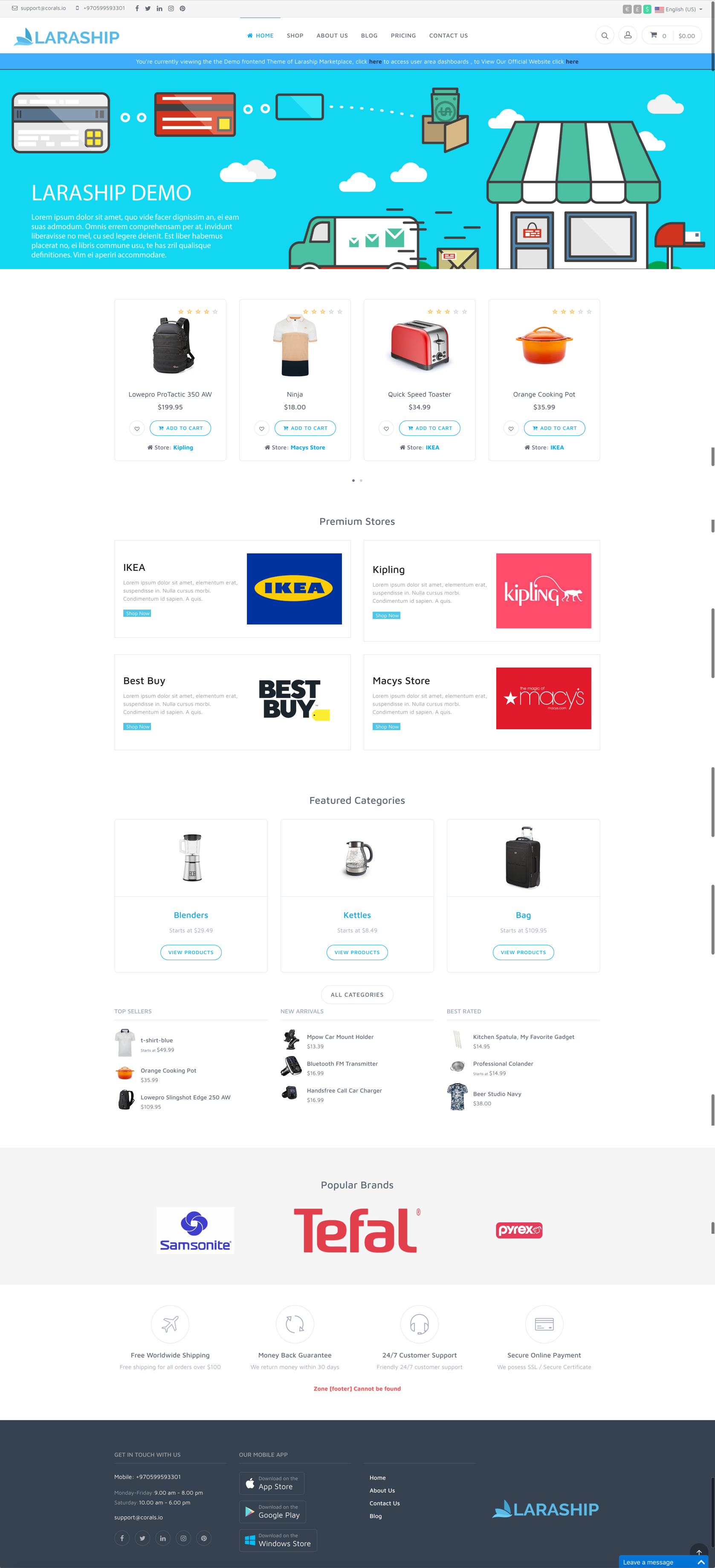 Give your platform its unique look and feel, Laraship has multiple themes available where you can use, not only that it provides you with documentation on how to extend themes or even to build your theme!.
